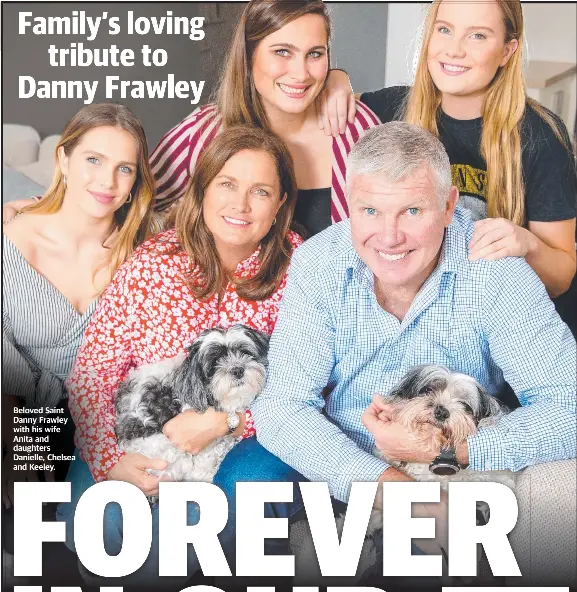 On wednesday, frawley's wife anita and daughters chelsea, danielle and keeley walked behind the car that had saints scarves danny frawley. Frawley was being remembered at a private funeral service for family and friends at kingston town hall, telecast on fox footy and played on large screens at moorabbin.